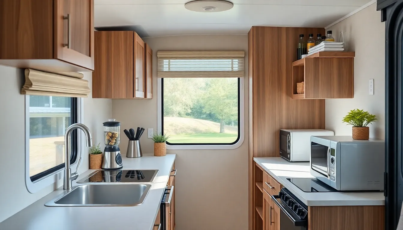 Kitchen appliances play a pivotal role in meal prep. Portable blenders provide convenience for smoothies and sauces. Compact microwaves enable quick cooking and reheating, saving both time and energy. Mini food processors assist in chopping and mixing ingredients efficiently. By incorporating these devices, mobile homes become versatile cooking spaces.